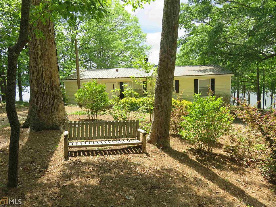 Best deal on lake! Expansive view with deep water & nestled in desirable, quiet, Crooked Creek Cove: minutes from 441. The perfect weekend & summer getaway: fire pit area, rock edging by the lake, great dock and a canopy boat lift-in turn key condition. New metal roof, new carpet in living and owner's suite, plus outbuilding for tools. Very tidy and cozy, one story home.