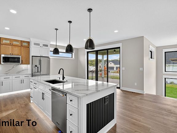 Exceptional new construction by Minako Homes located in Waukee's desirable Prairie Rose community! This elegant ranch features 6 bedrooms (including 2 primary suites), 4 baths, and over 3,600 sq ft of high-quality finish. You'll love the 9' ceilings on both levels, LVP flooring across the main and most of the lower level, detailed trim work, and custom-built closets 'no wire shelving here! The designer kitchen offers premium appliances with gas/electric options. The lower level includes a full wet bar, generous storage, and a 2nd primary suite. Additional highlights include a zero-entry shower, full basement ceilings without bulkheads, and pre-wiring for a garage heater, EV charger, and holiday lights. The covered composite deck overlooks a private backyard with patio, plus an oversized 3-car garage. Waukee Schools. Estimated completion date by January. All information obtained from seller and public records.