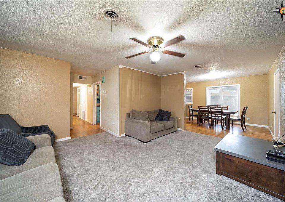 For your consideration, here is a 3 bedroom 1 1/2 bathroom home that is walking distance away from Eastern New Mexico University. Some furniture in the living room will be staying along with the washer, dryer, refrigerator, dishwasher, and microwave. There is a storage shed in the backyard that will stay as well. Owner Financing is available! Contact me for more info or a showing!