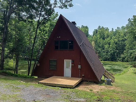 Looking for a vacation home or family getaway? This charming lakefront A-frame is nestled in the foothills of the Blue Ridge Mountains about 40 minutes from popular Lynchburg, Virginia. With 20 acres of forested land, it offers hunting, fishing, or just that perfect solitude you’ve been thinking of. Owner can finance this property on easy 30-year terms with a 10% down payment. This home has been newly renovated including new roof and HVAC system, and is sparkling clean ready for move-in. A bedroom on the main level with a full bathroom across the hall offer convenience and rustic charm. The full kitchen has beautiful butcher-block countertops and brand new appliances. As you enter into the great room, you’re greeted with astonishing lake views through the soaring chalet windows. A massive masonry fireplace completes the setting for those cozy winter nights in front of the fire. Upstairs a comfy loft offers still more space for guests or family to spread out. All the finishes are rustic wood that’s been newly stained with plenty of natural light. But that’s not all – downstairs is a full walkout basement with yet more room for accommodations. Another cute bathroom downstairs means this is a place you can stay as long as you want without cramping your style. Finally, the wide deck on the front of the house has the most beautiful view overlooking the lake – your lake! – you’ve ever seen. It’s a deep fishing lake with some granddaddy bass and a little pier on it. All around you are peaceful woods as far as the eye can see. It’s time to go ahead and get that vacation place you’ve been thinking about. Agents are welcome. Equal Housing Opportunity