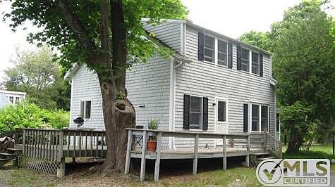 An Osterville property South of Route 28 on 3/4+- acre with a Versatile appeal for the Imaginative buyer. The home and 16x40'+- outbuilding are both connected to a passing Title V. The home has a heated front porch and open living dining room, a large eating kitchen, 3 rooms up and mostly wood floors. The outbuilding has electricity and plumbing. It would be great for a workshop or hobby area and boat or car storage. The 2nd floor has 2 entrances, 3 rooms and electric heat. The roofs, some Anderson thermopane windows and the Gas HW heat in the main house are newer. Buyers and their agents are welcome to verify information for themselves.