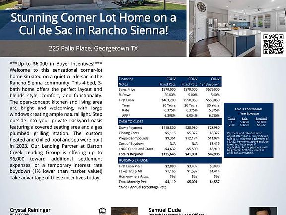 Welcome to this meticulously maintained home situated on a desirable corner lot in a quiet cul-de-sac in the highly sought-after Rancho Sienna community, part of the top-rated Liberty Hill ISD. This thoughtfully designed 4-bedroom, 3-bathroom home offers the perfect layout for multigenerational living, blending style, comfort, and functionality. The open-concept kitchen and living area are bright and welcoming, with large windows that fill the space with natural light. The kitchen is a chef’s dream, featuring elegant quartz countertops, a custom tile backsplash, and generous cabinetry. Matching quartz surrounds the living room fireplace, adding a sleek, modern touch. The main level includes both a spacious primary suite and a secondary bedroom, along with two full bathrooms—ideal for guests, in-laws, or extended family. Upstairs, two additional bedrooms, a full bath, and a versatile loft/game room offer flexible space for teens, college-aged family members, or a home office. Step outside into your private backyard oasis! A covered seating area and a built-in grill station (plumbed with gas) are perfect for entertaining. The custom heated and chilled pool and spa, built in 2023, allow for year-round enjoyment. The backyard features pet-friendly artificial turf for low-maintenance, clean outdoor living, and a separate fenced dog run adds extra convenience for pet owners. Living in Rancho Sienna means access to an exceptional community lifestyle—enjoy sweeping hilltop views, a resort-style pool, splash pad, 100+ acres of parkland, fishing pond, event lawn, miles of hike and bike trails, and a 24/7 fitness center. Conveniently located just 2 miles from H-E-B and other local amenities.