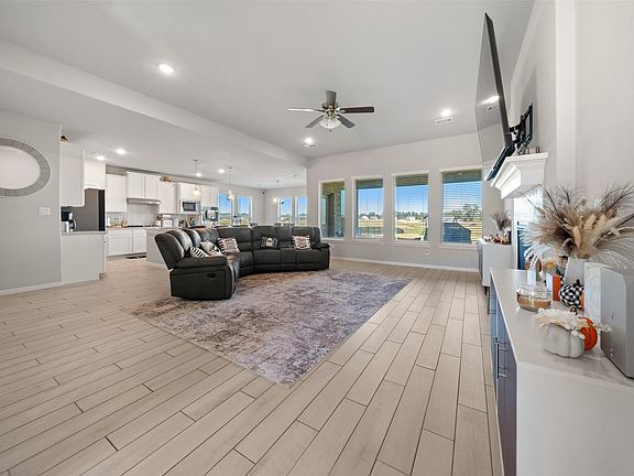 Beyond the impressive gates of Waterstone on Lake Conroe, discover the spacious Samantha plan situated on an oversized homesite. The Extra Suite Plus offers a private entry, garage, living room, kitchen, and shower-only bath — perfect for multi-generational living or guests. Inside, enjoy a cozy great room with a box mantel fireplace, maple cabinetry, under-cabinet lighting, and elegant quartz countertops in the gourmet kitchen. The home also features a convenient laundry sink, a dedicated home office, and a valet area off the foyer. Upstairs includes a versatile loft, media room, and three spacious secondary bedrooms with a double-sink bath. Relax or entertain outdoors on the covered patio. Nestled in a gated waterfront community with NO MUD TAX and no septic or aerobic system. Close to the new H-E-B and Kroger coming soon to Montgomery—just a short golf cart ride to downtown shops, dining, and local favorites!