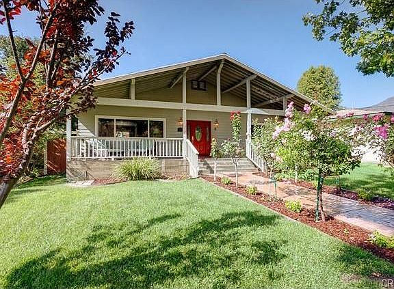 This charming 1946 house has been thoroughly modernized, including the plumbing and wiring. The huge front porch affords plenty of room for enjoying the peaceful neighborhood. The front room will dazzle you with its mahogany floor and recessed lighting, and its efficient layout leaves ample space for entertaining. The kitchen features a breakfast bar, large pantries, and an island wine rack. The master bedroom includes a sizable walk-in closet, a comfortable sitting area, and windows. The master bath offers twin sinks and a huge glass-doored shower. The other two bedrooms are similarly commodious, and the second bathroom includes a lengthy corner tub. The back yard has a partially covered paved area, an ideal spot for outdoor leisure, and a stretch of verdant lawn. The yard is fenced to ensure privacy, and is accessible from the front yard. This is a lovely, timeless home that will accommodate a wide range of family sizes and anyone seeking a quiet and friendly neighborhood.