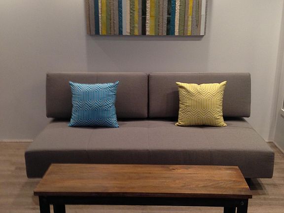 Queen sized bedBuilt in closetsHigh gloss cabinetsLarge lanaiQuartz countertops
