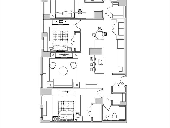 This large three-bed, two-bath apartment is located in Lower Manhattan's Battery Park City. The residence features oversized windows, hardwood flooring and stainless steel appliances, walk-in closets and an in-unit washer/dryer. The bed is queen size. Building amenities include a 24-hour doorman, fitness center, cinema room and indoor pool, perfect for a quick swim after long day of work.