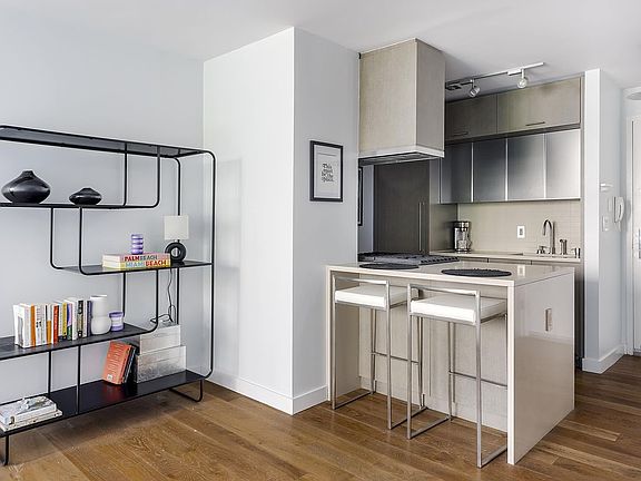 Nestled in the heart of luxury, this beautifully updated alcove studio feels like a warm and inviting haven. Step into the modern open kitchen, where a generous island beckons family and friends to gather around. Hidden Bosch dishwasher, Sub-Zero refrigerator, and a KitchenAid stainless steel range add a touch of elegance to your culinary adventures. The airy living/dining area bathes in natural light through north-facing oversized windows, offering a cozy space for entertaining or simply unwinding after a long day. With its snug sleeping alcove, this charming home easily accommodates a queen or king-size bed, inviting you to dream the night away. A spa-like bathroom with a deep soaking tub and natural stone accents creates a serene retreat. Storage solutions are plentiful, with three closets in the living area and an extended one in the sleeping alcove, ensuring life's essentials find their perfect nooks.
