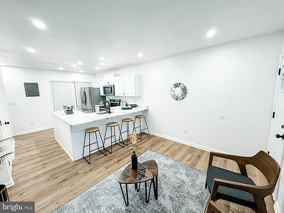 Welcome to 225 Ridge Road, a fully renovated row home in the heart of Claymont, DE. This modern and smartly designed residence offers 2 bedrooms and 1 bathroom, perfectly crafted for contemporary living. As you enter, you're greeted by an inviting enclosed porch, setting the tone for the open concept living space that follows. The main floor features new luxury vinyl plank flooring, seamlessly connecting the living room to a large U-shaped kitchen. This culinary haven boasts quartz countertops, a breakfast bar with chic pendant lighting, and brand-new stainless steel appliances. With ample storage, this kitchen is both functional and stylish. Beyond the kitchen, discover an enclosed back porch equipped with heating and air conditioning. This versatile bonus room can serve as a family room, extra bedroom, or creative space to suit your needs. Upstairs, new carpeting adds comfort to the private quarters. The home is equipped with three new mini splits, ensuring efficient climate control throughout. Recent upgrades include a new roof, heating, electric, and plumbing systems, providing peace of mind for years to come. Step outside to a private backyard, perfect for relaxation or entertaining. Conveniently located near I-95, you'll enjoy easy access to shopping and dining in Wilmington. This home is a true gem, combining modern amenities with timeless charm.