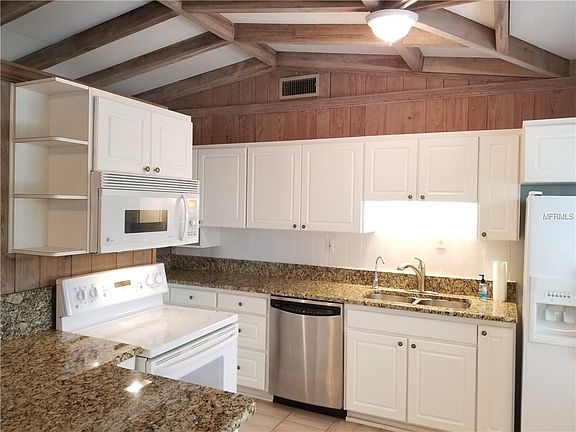 This spacious 1328 sqft 2x2 home is a must see! You are immediately greeted with beautiful exposed wood beams in the entry/bonus room, which also carries throughout the kitchen & living room. The open concept kitchen, living room, & adjacent dining room is perfect for entertaining! The kitchen has beautiful white wood cabinetry, granite counters, a side by side refrigerator, and a built-in desk. The master suite has its own private office, spacious bathroom, and French doors leading to the back patio. The back patio & backyard is perfect for those who love the outdoors and entertaining. Home also includes a 1 car garage with washer & dryer and lawn care is included. Downtown Ozona & downtown Palm Harbor are only minutes away. Call today for an exclusive tour!