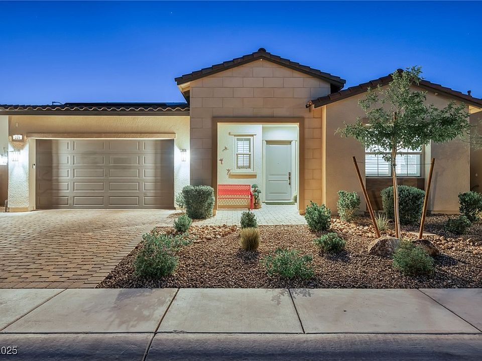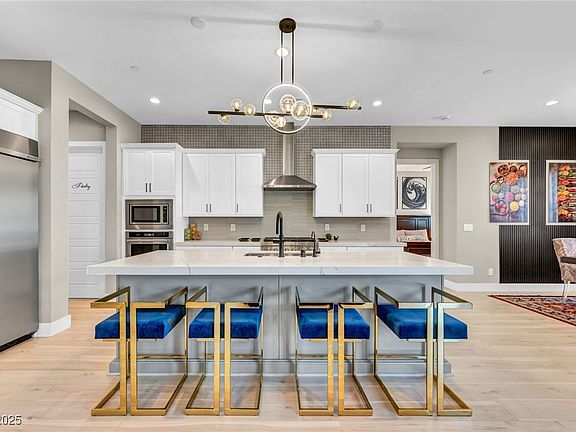 This professionally designed residence showcases thoughtfully appointed features & Tesla owned solar for max efficiency! From custom treatments to curated finishes each hand-selected detail adds depth, character & modern elegance. Chef’s kitchen showcases Ferguson built-in refrigerator, KitchenAid appliances, quartz countertops, ceiling-height mosaic backsplash, island w brkfst bar, linear pendant lighting & walk-in pantry. Great room impresses w 12’ ceilings accented by floor-to-ceiling curtains, 42” Cosmo fireplace & 12’ multi-stacked slider. Primary suite features spa-inspired bath w separate luxe shower and soaking tub w custom walk-in closet. Backyard is designed for beauty & low maintenance w covered patio, synthetic grass, white marble rock & lush greenery. Add'l highlights include stylish secondary beds w shared hall bath, smart home features, electric car charger, epoxy garage & water softener. Located in Toll Brothers Acadia Ridge's gated community- I-215 Access & Urban Core