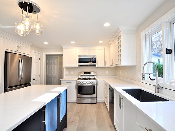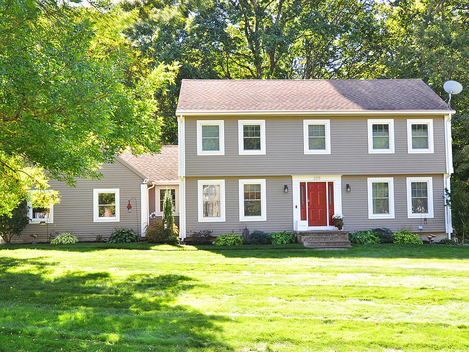 Striking curb appeal meets enduring sophistication in this stately, four bedroom Colonial home nestled in a peaceful neighborhood. A spectacular, remodeled kitchen boasts beautiful, new white cabinetry and quartz countertops, stainless steel appliances, new flooring, an island/breakfast bar, new recessed and pendant lighting, a vaulted ceiling, a skylight, a spacious dine-in area and a slider to the deck. Perfect for casual and holiday meals, the dining room features gleaming hardwood, new lighting and a chair rail. A woodburning fireplace and rich hardwood flooring adorn the sunken family room. Relax in the living room, anchored by beautiful hardwood flooring that adds warmth and character. An updated half bath, a mudroom and a laundry area round off the first level. Ascend to the second level to the Primary bedroom suite with a vaulted ceiling, walk-in closet, new flooring and an updated, private full bath. Three additional bedrooms with new flooring and an updated full bath complete the second level. The partially finished, heated lower level offers additional living space and a walk-out slider. Ideal for outdoor entertaining, a stunning two-tiered Trex deck sets the scene for summer barbecues and evening sunsets. The fenced backyard is perfect for recreation. There is tremendous value in the newer furnace, newer central air, newer Pella thermal pane windows, fresh exterior paint, newer driveway, newer deck and newer hot water heater. Come on...let's take a look inside!