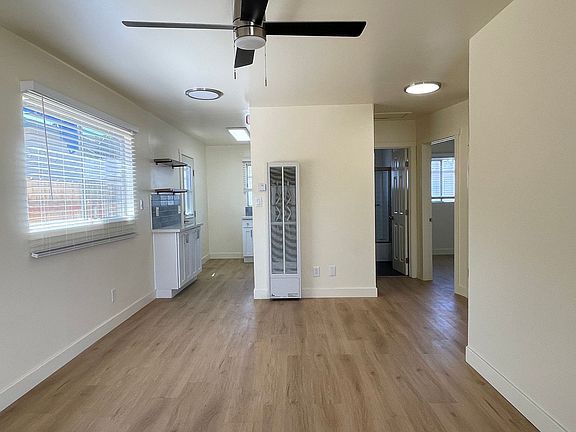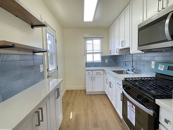 This beautifully updated 2-bedroom, 1-bath rear unit offers a modern, light-filled living space with new plank flooring, updated fixtures, and ceiling fans throughout. The kitchen features quartz countertops, a stylish tile backsplash, and stainless steel appliances, including a gas range and microwave. Both bedrooms have ample closet space, and the layout provides a comfortable flow from living to kitchen areas. This is a great opportunity to enjoy a clean, updated home in Lompoc's lovely Southside location. One year lease required. Tenant to pay all utilities (utilities will be billed back to the tenant). Small dogs are welcome with a monthly pet rent (breed restrictions apply).