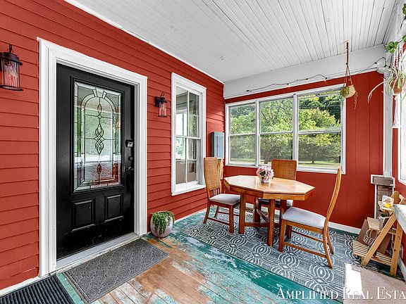 This beautifully updated 3-bedroom, 2-bath farmhouse is located just two blocks south of historic downtown Lowell and directly across from Rogers Field, a tranquil city-owned lot that adds open green space and curb appeal. This charming two-story home offers 1,565 square feet of finished living space and blends vintage character with modern upgrades, including a newer roof, furnace, and instant water heater. The garage at one time has been thoughtfully converted into a spacious primary bedroom with a spacious closet, adding comfort and layout flexibility. The kitchen and bathrooms were recently renovated. Situated in a designated flood zone, the basement is professionally waterproofed with a sub-slab drainage system, foundation wall moisture barrier, and an accompanying sump pump for added protection. The exterior boasts a generous side deck with kitchen entry, a cozy enclosed porch at the main entry, wildflower garden and two storage sheds. Nestled on a corner lot with sidewalks and easy access to Lowell schools, shops, dining, and the Flat River, this home offers a rare blend of historic charm, modern convenience, and scenic surroundings.