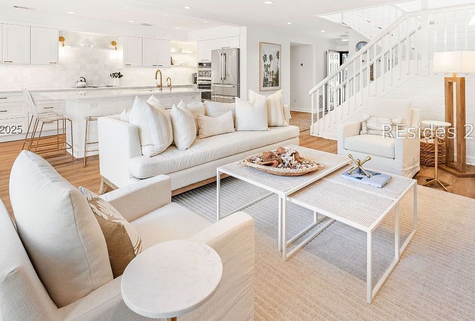 Welcome to the most stylish and comfortable South Beach Villa, well, ever. NOW WITH 4 BEDROOMS and 4.5 BATHS, this casually sophisticated abode is move in and/or rental ready with everything you thought you needed-- and more! The floor plan has been opened and reconfigured to advantage every space for your family and guests. The main level offers up a sleek, open kitchen/dining/living area, plus a powder bath, laundry and king bedroom with en suite bath. Upstairs you will be amazed at the placement and privacy afforded to 3 bedrooms (king, queen, twins), each with ensuite bath. Primary bedroom also features a step out porch with TV. All outfitting, electronics, and fabulous furnishings are included, making this villa nearly irresistible. Why try?