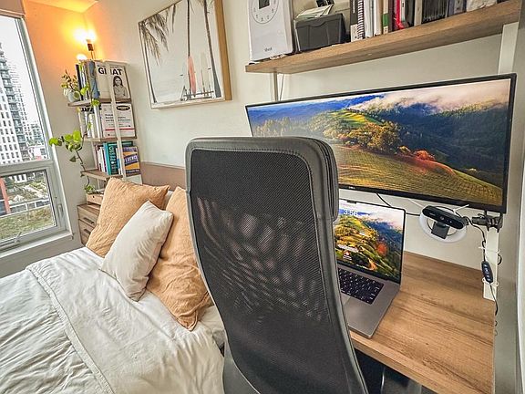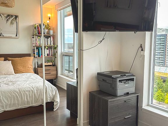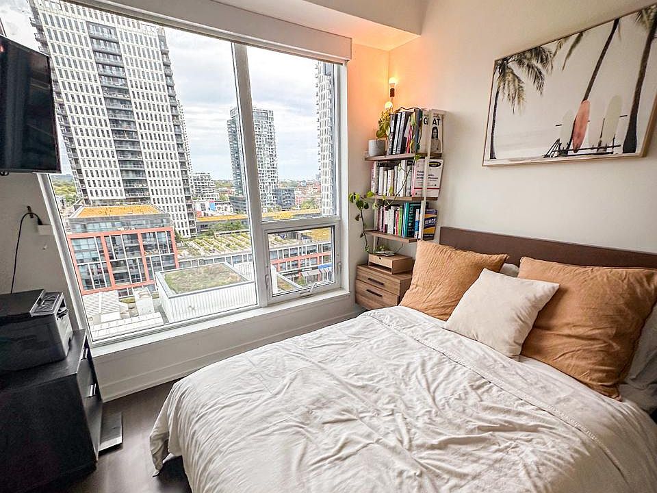 FURNISHED ROOM Beautiful shared two-bedroom condo in the Regent Park area at 225 Sackville street, M5A 0B9 (leaving because I'm moving out of town). The room has its own in-suite bathroom, a very comfortable double bed, a desk, and substantial storage. The price for the bedroom is $1575 per month, all amenities included (electricity, hot water, wifi). The apartment has lots of natural light, is relatively large with an ample kitchen open to the living room and dining room. A large balcony overlooks the park (amazing spot for having dinner or watching the amazing sunsets we get up here). Further amenities include: - full stocked kitchen - in-condo washer/dryer - Flatscreen TVs, both in the living room and in the bedroom. - The building has a gym and a party lounge with BBQ in the summer (see pictures). - The public indoor Pam McConnell pool is free and is 70m away (building does not have a pool). To sum up, you only need to bring your suitcase and you're all set. Regent Park is a family neighbourhood next to Cabbagetown and 10min from Downtown Toronto. The stop for the 505 streetcar is literally in front of the building, and lots of bike paths are availablein the summer. Both FreshCo and Rabba (24h/7) grocery stores are two blocks away. Pharmacy, Tim Hortons, bakeries, and a bunch of other businesses are in the area as well.