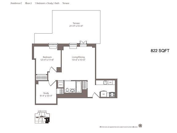 - Total interior livable area: 822 sqft
