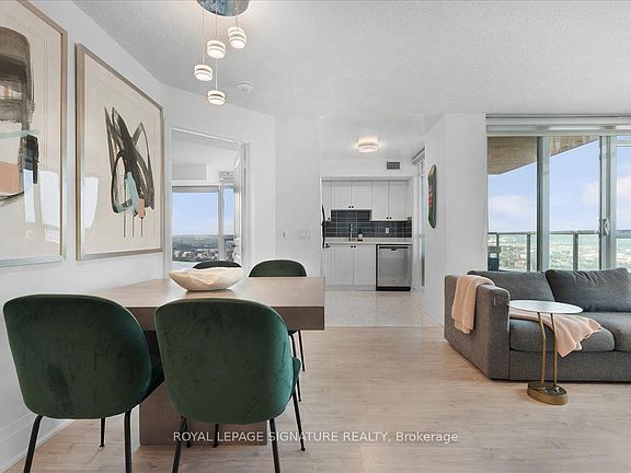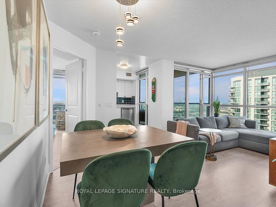 Welcome to this family-sized & sun-filled, 2-bed/2-bath corner suite in one of Etobicoke's most vibrant & convenient communities. This extensively renovated 834 sq.ft unit is thoughtfully designed with a split-bedroom layout for utmost privacy & functionality. You'll love the light the floor-to-ceiling windows provide. The large foyer w/ mirrored double closet leads into the open-concept living & dining areas, feat. bright & airy laminate flooring & upgraded baseboards throughout. The kitchen offers new modern tile flooring, S/S appliances & Quartz countertop. The living room walks out to a private balcony with unobstructed North views, East views, & of course the shimmering waters of Lake Ontario looking South. The primary bedroom is a lavish private retreat that easily accommodates a king bed, has a walk-in closet with built-inorganization, & a recently updated 4-piece ensuite complete with soaker tub & glass shower doors. The 2nd bedroom offers a double mirrored closet, & the second full bath mirrors the same high-end updates ideal for guests or family. The convenient location is unmatched with world-class shopping & dining at your fingertips at Sherway Gardens Mall, TTC at your doorstep, Trillium Hospital, ravine trails, Etobicoke Valley Park, & is perfectly situated between QEW &Hwy 427 for quick commutes & trips to the airport. If that's not enough, let's not forget Home Depot, Wal-Mart, Homesense, Best Buy, Costco + more are all within minutes. This unit comes with 1 exclusive underground parking spot & 1 oversized storage locker. Freshly painted throughout, there's nothing to do but move in! Resort-Style Amenities Incl. indoor pool w/ sun lounge, gym, hot tub, his/hers sauna, yoga studio, golf simulator, library, playground, guest suites, theatre room, visitor parking, and even weekly family-friendly activities for kids and seniors making this a truly community-focused building. Whether you're upsizing or downsizing, this condo fits just right.