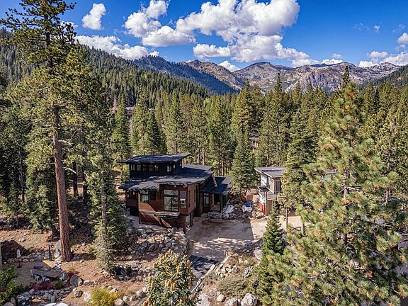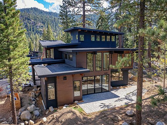 Brand new mountain modern masterpiece with European influence, rustic charm and unrivaled views. This aesthetic-driven, custom-designed home is a true work of mountain modern art and architecture. Inspired by European design and sensibilities, and crafted with natural materials including imported Italian timber, steel, and stone—every detail reflects a dedication to timeless elegance and quality craftsmanship. Perfectly nestled beside a year-round creek in the heart of Olympic Valley, this 4-bedroom, 4.5-bathroom residence with an extraordinary bonus room offers sweeping 360° views of Palisades Tahoe, Painted Rock, and the surrounding peaks. Floor-to-ceiling windows flood the home with natural light and capture stunning vistas from every room. Inside, two luxurious primary suites feature spa-inspired ensuite bathrooms and custom Italian wood installations. The home also includes a gourmet chef’s kitchen, den/media room, a well-appointed mudroom, and luxury finishes throughout. The layout is both functional and inspiring, blending modern comfort with mountain charm. The expansive patio backs to forested views and bubbling creek, creating a serene and secluded outdoor retreat. Relax by the fireplace in the cozy living room, connect with family, friends in the stunning great room surrounded by glass and listen to the tranquil sounds of flowing water in a home that offers nature at your doorstep. Just 2 miles from world-class skiing at Palisades Tahoe, this is more than a home—it’s a legacy property in one of Lake Tahoe’s most iconic settings.