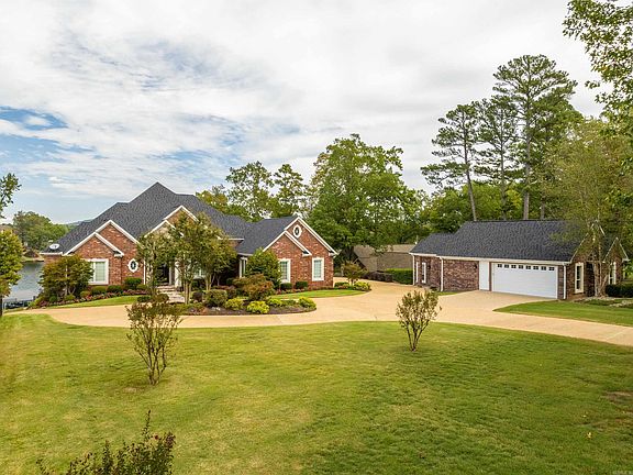 One-of-a-kind Lake Hamilton Estate with over 193' of lake frontage and 1.14 acres fully fenced and only 1.5 miles to Airport Road and 3 miles to the Bypass. Main House is 4908 Sq. Ft. with 5BR/4.5BA. The Detached Office & Movie Theatre is 602 Sq. Ft. and includes a 2 Car Garage, Half Bath, Kitchenette/Wet Bar, Pop Corn Machine, High-End Theatre and Sound System Electronics and 9 Luxurious Beautiful Red Recliners for your movie viewing pleasure. This is luxury lake living at its finest with no attention to details overlooked. Master Suite and 2nd and 3rd Bedrooms and Baths, Kitchen, Breakfast Bar, Breakfast Nook and Great Room, Formal Dining Room and Utility Room are all located on the main level. The lower level is an In-Law Quarters with a full Kitchen, Bedroom, Bathroom, Washer/Dryer, Safe Room, Workout Room/Golf Cart Garage, and a Large Office that could be used as a 6th Bedroom with a closet located across the hall.