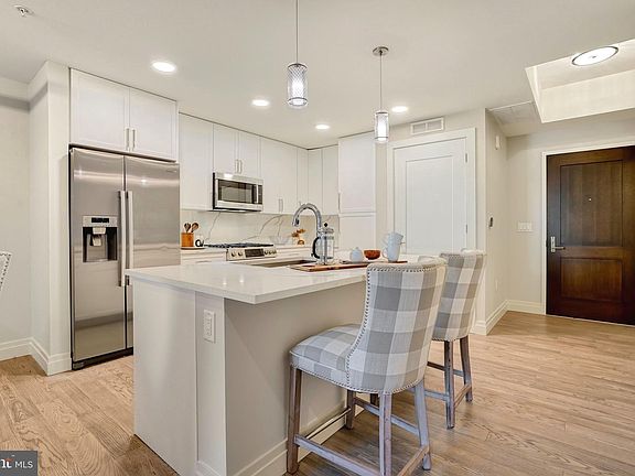 $50,000 price improvement. If you're looking for luxury and convenience along Old Town's waterfront, look no further than this sophisticated 4 year old residence with low fees. As one of only 18 units in the highly coveted Watermark, unit 202 features high end finishes, high ceilings, abundant storage and private garage parking. The elegant lobby with the sparkling Potomac river as a backdrop sets the tone with beautiful marble floors, designer lighting and exquisite furnishings. Located on the 2nd floor, you'll love the open floor plan featuring hardwood plank flooring throughout; a sleek designer kitchen with Bosch appliances, quartz counters and custom cabinetry; warm living room and dining area; an inviting bedroom suite with walk-in closet and second closet; sumptuous full bathroom; and half bathroom. The charming balcony is the perfect setting for morning coffee or winding down in the evening. Watermark residents enjoy use of the building's stunning roof terrace with grills, heaters, abundant seating and sweeping views from the Capitol to the Wilson Bridge. The unit includes a garage parking space, additional storage in the condo hallway, and bike storage. With the vibrant Old Town waterfront right outside your door, you're just steps from restaurants, shopping, art galleries, walking and bike baths, and transportation options. Hop on the trolley and head up to King Street Metro, or take the water taxi to DC or Maryland. By car, you're just minutes from Amazon HQ2, Reagan National Airport, the Pentagon, and Downtown DC.