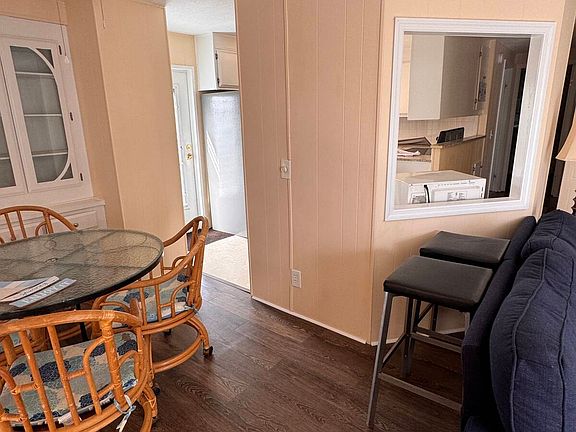 This 2 bed/2 bath, double-wide home has 864 sq. ft. of living space and is full of possibilities. The home is missing a carport which is required by the community and has a porch with a raised pad that needs to be enclosed/screened; but otherwise, it is ready to be lived in while those improvements are made. It comes furnished; bathrooms have walk-in showers; refrigerator, stove and dishwasher in the kitchen, and the bedrooms are comfortable in size. The home is in the 55+ community of Orange Harbor and allows for up to two pets; some dog breeds are not allowed, so be sure to review the rules. ESA animals are allowed. The monthly lot rent is $984.35 and includes water/sewer, trash, lawn care, fiber optics internet and all the amenities of the community, including heated pool, large clubhouse, boat slips and boat storage, pickleball courts, etc. Price is for the home only; share for the lot and ownership in the co-op can be purchased for $108,281. Ask the listing agent for details.