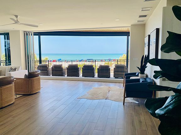 PRIME LOCATION - DIRECT GULF FRONT VIEW - LOCATED ON VENICE BEACH. Top of the line, newly constructed, gated luxury condominium unit boasting 2,800 sq/ft with 3 full ensuites + 1/2 bath. High end furnishings and professional interior design throughout, including custom Wood Mode cabinetry, quartz counterops and porcelain plank flooring. Spacious open floor plan featuring a full wall of 10' high retractable glass doors, creating indoor/outdoor living space with the expansive balcony and stunning direct views of the Gulf of Mexico. Extravagant master suite with balcony access, walk in closets and an indulgent wet room featuring a soaking tub and dual shower heads. Sleeps 9: Master-1 king bed, Guest-1 queen bed, Bunk room-3 full and 1 queen bed. Opulent roof top pool and landscaped courtyard with direct private access to the beach. One car attached garage on ground floor and private elevator access to the unit and pool. Perfectly located on Venice Beach within walking distance to downtown Venice, weekly farmers market, boutiques, pickleball and tennis courts and countless dining option. Minimum rental terms with variable seasonal rates.