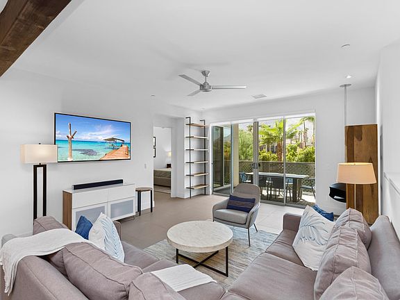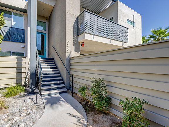 BIG PRIVATE YARD w/PRIVATE FIREPIT and covered area! Beautiful newer construction (2019) 2 bed 2.5 bath condo right in the center of Palm Springs! This upper level condo WITH MOUNTAIN VIEWS is filled with custom details, including a cool Jetson style suspended fireplace, wine fridge, specially designed closet systems, and a private expansive ground floor patio. Full solar as well, which means low or zero electricity costs! Located within 64@TheRiv, a gated community with luxury amenities and architectural design. Community features include a resort style pool/spa, with poolside fire feature and seating area, outdoor grills and mountain views. Environmentally conscious elements abound, including low-e glass, LED lighting, tankless water-heater, and electric car charging ports for common use. Other design features include open concept living area, 9' ceilings with exposed beam, 8' tall sliders onto patio, clerestory windows, tile floors, quartz countertops and backsplash, and custom cabinetry. This unit is FURNISHED and available for a 1 year lease. 1 covered carport is included, and up to 2 small pets are allowed upon approval -$500 deposit per pet. Call now to schedule a showing! BIG PRIVATE YARD w/PRIVATE FIREPIT and covered area! Beautiful newer construction (2019) 2 bed 2.5 bath condo right in the center of Palm Springs! This upper level condo WITH MOUNTAIN VIEWS is filled with custom details, including a cool Jetson style suspended fireplace, wine fridge, specially designed closet systems, and a private expansive ground floor patio. Full solar as well, which means low or zero electricity costs! Located within 64@TheRiv, a gated community with luxury amenities and architectural design. Community features include a resort style pool/spa, with poolside fire feature and seating area, outdoor grills and mountain views. Environmentally conscious elements abound, including low-e glass, LED lighting, tankless water-heater, and electric car charging ports for common use. Other design features include open concept living area, 9' ceilings with exposed beam, 8' tall sliders onto patio, clerestory windows, tile floors, quartz countertops and backsplash, and custom cabinetry. This unit is FURNISHED and available for a 1 year lease. 1 covered carport is included, and up to 2 small pets are allowed upon approval -$500 deposit per pet. Call now to schedule a showing!