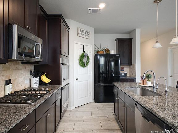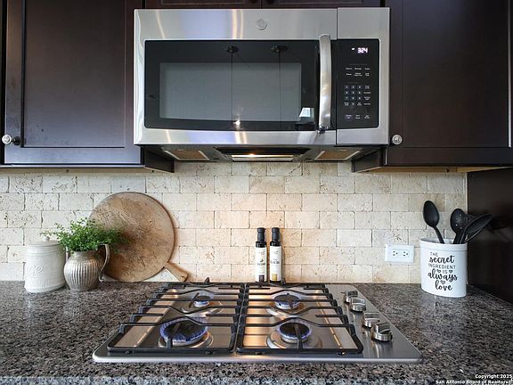 This well-kept 2019 home offers a functional layout and a peaceful greenbelt setting in the Preserve at Singing Hills. Sitting on a quiet greenbelt provides not only offers scenic views but added privacy and an extra dose of nature that you will be enjoyed all year. And the abundant natural light peeking through a wall of windows will help you to never miss a sunset. Inside, the open floor plan features 4 bedrooms, 2.5 baths, and an upstairs game room/flex room that can serve as a second living area, playroom, or office. The kitchen includes gas cooking, granite countertops, a large island, 42" mocha soft-close cabinets, stainless steel appliances, and recessed lighting. Recent updates include new wood-laminate flooring on the stairs and in the game room, plus updated blinds in the dining, breakfast, and game room areas.The kitchen opens to a spacious gathering room-ideal for everyday living or hosting guests. Upstairs, the game room provides additional versatility to fit a variety of needs.The extra-large primary suite includes dual vanities and a special shower will impress!Enjoy the outdoors from the covered back patio overlooking the fenced yard and greenbelt beyond-great for relaxation, pets, or play.This home offers comfort, space, and a scenic setting in Spring Branch. Schedule your showing today.