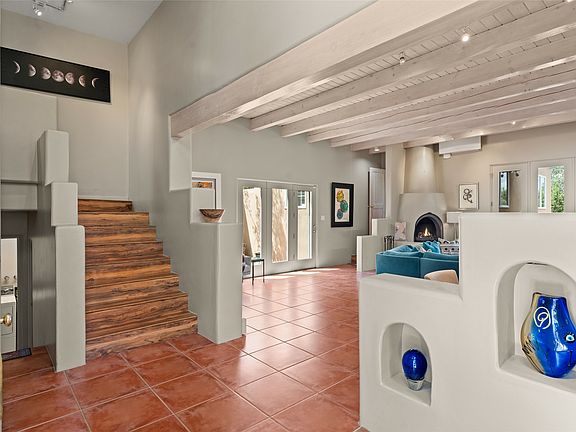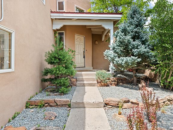 An In-Town Oasis This light- filled , spacious property enjoys Stunning Sangre Views and is walking distance to the Historic plaza and Ft. Marcy. The property features multiple courtyards and fountains, high ceilings and a large master bedroom with sitting area and fireplace...and these are just a few of the many amenities that this property enjoys. The eat-in kitchen with fireplace is inviting and well appointed. The upstairs guest bedrooms are separated from the entertaining areas. There are mini-split A/C's throughout, good storage and an attached 2-car garage. This is a lovely and hard to find property in a ideal location.