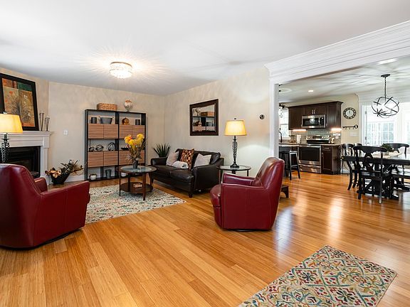 Welcome to The Pond on the Villages of Chester. This premium lot home has a view of the "pond" and a large grassy area off of the private patio in the back for your enjoyment. The 2 car garage leads directly into the upgraded kitchen which includes an island with seating, granite countertops, stainless steel appliances, a wall of cabinets that include a wine rack and glass front doors, undercabinet lighting, and a tile backsplash. The attached dining area is large enough for family gatherings. The cozy sunroom leads to an oversized deck with stairs that lead down to the back yard. The living room has a gas fireplace to enjoy on those cool evenings. Upstairs, you will find a full guest bathroom, guest bedroom and primary bedroom with a walk in closet and en suite bathroom with a tile shower with glass doors, double sinks and make up area. The basement, or man cave, has surround sound to listen to the 86" TV that is staying for your entertainment pleasure. The second room is currently used as a game room but could be a great office or third guest room. The laundry and 1/2 bath round out the finished space in the lower level. Slider doors lead out to the beautiful brick patio and expansive back area. This is NOT a restricted age community. There is a club house and an inground pool for your enjoyment. This beautiful condo feels like NEW! All you need to do is move right in and enjoy the maintenance free living this community has to offer. Showings begin 10/21/23.