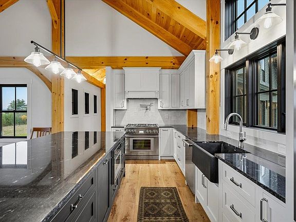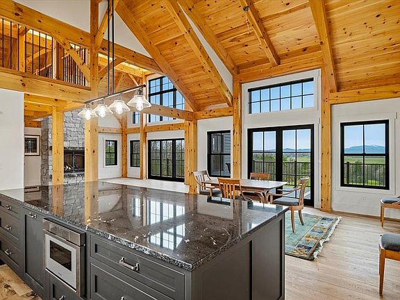 Breathtaking views from every window! Enjoy gorgeous sunsets over the Adirondacks and spectacular mountain views every day from this custom-built Timber Frame home, thoughtfully designed for modern living and energy efficiency. The open floor plan features stunning exposed Timber Frame cathedral ceilings and an abundance of natural light. The chef’s kitchen boasts custom cabinetry, luxury appliances, walk-in pantry and an oversized granite island that opens to the dining room. Entertain in the stunning great room, highlighted by a beautiful stone gas fireplace and a slider leading to an expanded deck that spans the back of the home—perfect for taking in the breathtaking views. The loft area above offers a peaceful retreat or the ideal for a quiet space or home office. The first-floor primary suite includes a private bath with soaking tub and custom shower, a walk-in closet, and direct deck access for maximum enjoyment of the scenery. The lower level features two guest bedrooms, a full bath, and a spacious family room with a stone gas fireplace and slider to the back meadow. An oversized two-car garage with a one-bedroom ADU completes this remarkable property. Set on over 30 acres with two open meadows that preserve your view and offer endless possibilities, this spectacular Timber Frame home was designed for low maintenance, easy living, and ultimate privacy—all with convenient access to Vergennes, Middlebury, and Burlington. Truly, Vermont living at its best.