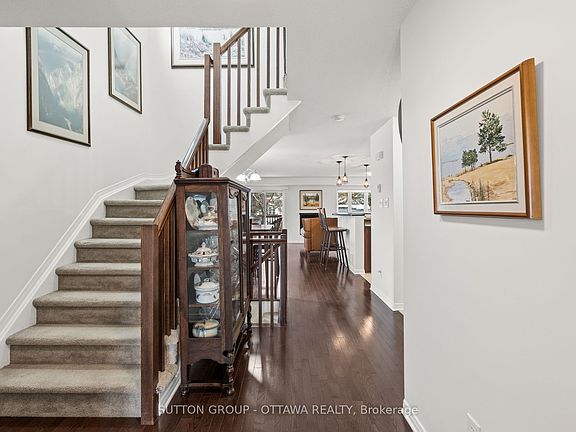 Sophisticated and sun-filled 3-bedroom, 4-bathroom end unit townhome ideally positioned on a premium corner lot in sought-after Riverside South. The largest of the Claridge models, it offers approximately 2,270 sq. ft. of thoughtfully designed living space that blends elegance with everyday functionality. A newly paved driveway (2024) and interlock walkway create a refined first impression, providing parking for up to four vehicles. Inside, the main level showcases hardwood and tile flooring and a bright, open-concept kitchen and under-cabinet lighting, stainless steel appliances, and a walk-in pantry (2017). Elegant lighting highlights the dining area, while a raised gas fireplace anchors the inviting living room-perfect for relaxing evenings at home. Main level also includes 4 ceiling speakers. Upstairs features soft broadloom, a convenient laundry room, and three generous bedrooms. The primary suite offers a walk-in closet and a luxurious ensuite with upgraded tile and fixtures. Secondary bedrooms share a tastefully updated, main bath designed with modern materials and thoughtful detail. The fully finished lower level adds exceptional living space with a large recreation room, full 3-piece bath (2021), and ample storage. It's wired for ceiling surround sound speakers and includes electric baseboard heaters, ideal for a media room, gym, or guest retreat. Notable updates: John Wood Proline 60-gal hot water tank (2024, owned), Goodman furnace (2017), rear deck (2018, fully permitted), natural gas BBQ line (2019), fencing (2020 & 2023), upgraded toilets (2018), patio stone walkway (2019), and gutter drainage to dry wells (2019). An impeccably maintained, move-in-ready home just minutes from Claudette Cain Park and the future Riverside South LRT Station-a perfect blend of comfort, quality, and location.