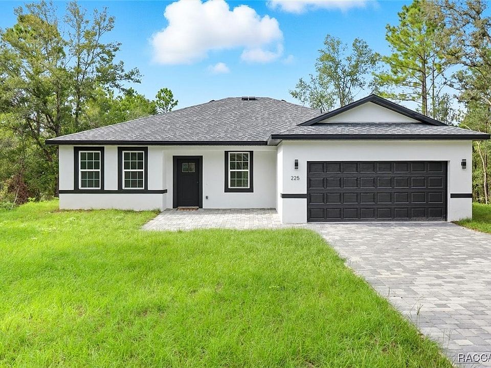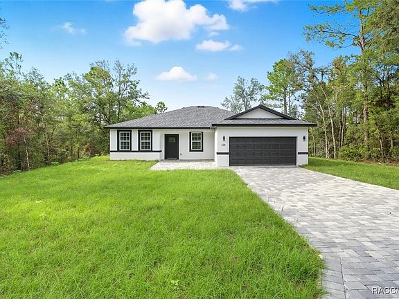 Come fall in love with this beautifully designed NEW CONSTRUCTION home located in Citrus Springs! With an open floor plan, soaring 9'4" ceilings and tile floors throughout, this 4 bedroom, 3 bath home encases warmth & simplicity w/ its stylish fixtures, tones & natural light. This home is great for growing families or entertaining guests, & offers TWO PRIMARY SUITES! Upon entry is the living room & dining area leading into the kitchen equipped with stainless steel appliances, solid wood cabinets, quartz countertops, center island & pantry. The primary suite has two generous walk in closets & bathroom with a walk-in shower & dual vanities. The 2nd suite offers a spacious closet and en suite bath w/ a shower/tub combo. The outdoor space is equally impressive, w/ a pavered driveway & front porch, rear covered lanai & plenty of room to add a pool. Situated in a deed-restricted community with NO HOA fees, Citrus Springs offers access to a local library, community center for social events, lighted tennis courts, and a park for kids. The nearby golf course has a restaurant, putting greens, and driving range. Not to mention, you are minutes away from the Withlacoochee State Trail for hiking & biking, and the world renowned Rainbow River & Springs for kayaking, diving, fishing & all that nature has to offer. Conveniently located just minutes away from restaurants, shopping, medical services, and excellent schools, this home is perfect for creating lasting memories. Don’t miss the chance to make this move in ready home,YOURS. Call to schedule your showing today!