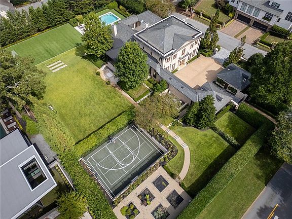 Discover an exquisite French-inspired mansion within walking distance to Buckhead Village. Formerly a Decorator’s Showhouse and featured in Veranda magazine, this estate embodies the French concept of a “Hotel Particulier,” offering grand, light-filled spaces and meticulous attention to detail. Two gated entrances provide secure access to a private motorcourt framed by charming espaliered pear trees and a 3-car garage. This exceptional property represents absolute perfection, blending amazing construction detail, bespoke finishes, and the ultimate Buckhead lifestyle. The private grounds spanning 1.3 meticulously maintained acres thoughtfully designed by Land Plus following the acquisition of the adjacent lot, display an idyllic and secluded sanctuary. Large screened patios overlook a verdant lawn that transitions into a turf soccer field. Hidden gems are a pickleball court with an integrated half-court basketball setup, as well as flourishing vegetable and herb gardens, and a newly installed 50-foot pool, heated and cooled for year-round enjoyment. MAIN LEVEL - Conceived by renowned French artisan Thierry Francois, the home showcases exceptional stonework including a limestone exterior, Design Galleria state-of-the-art kitchen, authentic doors, windows, and hardware imported from France, premium Waterworks plumbing, and rich walnut flooring, with a commitment to quality and elegance on full display. The lovely main level primary suite features boutique-quality closets and a breathtaking bathroom. UPPER and TERRACE LEVEL - A grand limestone staircase leads upstairs to three spacious bedroom suites. The terrace level is designed for entertainment and relaxation, featuring a wine cellar, home theater, game room, bar, guest quarters, and playrooms. An elevator provides convenient access to all levels. Located prominently on the corner of West Paces Ferry and West Andrews Drive, the residence offers unparalleled convenience, just steps from the vibrant energy, exclusive shopping, and fine dining of Buckhead Village.