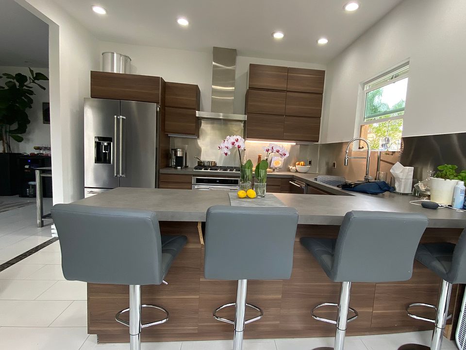 Enjoy a quiet experience at this beautifully restored Craftsman home in downtown Santa Barbara, blocks from the Public Market and State Street. Features white floors, soaring ceilings, gourmet kitchen with stainless appliances, gas stove, granite counters, and peninsula seating for four. Master bedroom has king bed, large closet, and custom walk-in shower. Living area includes TV, fireplace, and beverage fridge with dry bar. Relax on the covered front porch or private backyard. Pets welcome!