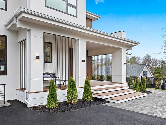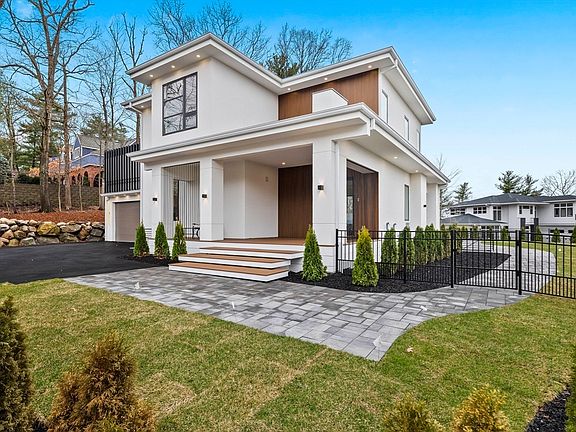 Price improvement on this stunning home where California modern design meets luxurious indoor-outdoor living. This season, entertain in style in the expansive backyard featuring a fully covered outdoor kitchen w/ gas cooktop and grill, heated jetted spa, gas firepit, and WiFi-controlled sprinklers. An oversized second-floor deck overlooks it all. Inside, tall windows flood the home w/ natural light, showcasing 6” wire-brushed Ashwood floors and a gourmet kitchen with Jenn Air appliances, quartz counters, and a custom coffee station. The primary suite offers a spa-style bath with slab porcelain shower, soaking tub, heated floors, and a custom closet—plus potential for a private balcony. Includes 4 additional bedrooms, and ample storage. The walk-out lower level is prime for in-law or au-pair suite with its own entrance, a bedroom, family room, wet bar, and steam room. 2-car garage w/ EV charger complete this gorgeous offering. Few minutes away from shopping, dining, and downtown Boston.