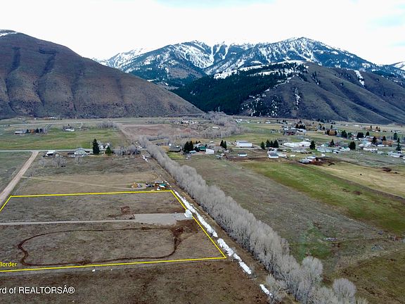 Enjoy the serene setting near Dry Creek, with tall Cottonwood trees framing your stunning south-facing views. Panoramic vistas of Dry Creek Canyon, the Salt River Mountain Range, and wide-open fields create the perfect backdrop for your Wyoming dream property.