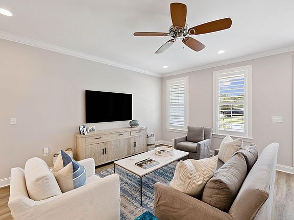 Outdoor living is equally inviting with a screened porch accented by heirloom brick, overlooking a large grass yard with ROOM FOR A POOL, plus a concrete patio with gas hookup for grilling and a privacy fenceperfect for entertaining. Additional features include plantation shutters, irrigation system, and an epoxied garage floor. The new Watersound Parkway extension provides quick and easy neighborhood access.