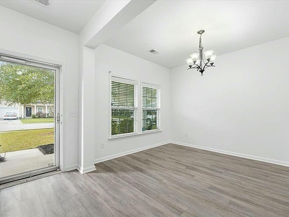 Nestled in the heart of the highly sought-after Dorchester Two school district, this charming 3-bedroom, 2.5-bathroom home sits on a sprawling lot, perfect for families seeking space and style. The large, landscaped front yard welcomes you into the inviting interior, where a formal dining room awaits. The hallway flows seamlessly into an open-concept living room and kitchen. The kitchen is a showstopper, featuring a wood accent wall, white cabinetry, a spacious island, stainless steel appliances, and a stylish tile backsplash, all overlooking the backyard. A wrought iron staircase leads you up to a generous loft area, perfect for a playroom, office, or additional lounge space. The primary suite impresses with tray ceilings and a luxurious ensuite complete with dual sinks, a tiled glass-door shower, a soaking tub, and a walk-in closet. Down the hall, you'll find two additional bedrooms and a guest bathroom. Outside, the expansive backyard invites you to enjoy Lowcountry summers on the extended concrete patio, surrounded by mature trees that provide shade and privacy. With its prime location near Joint Base Charleston and Boeing, a spacious layout, and stylish finishes, this home is a must-see!