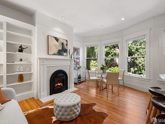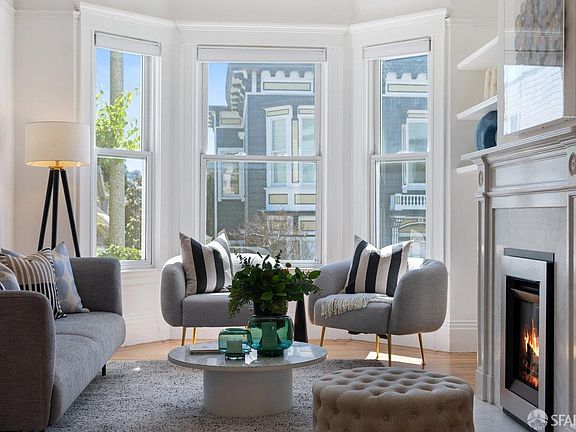 Located on a tree lined street in coveted Duboce Triangle, this fully remodeled Edwardian flat is filled with classic details and thoughtful modern touches: large bay windows, hardwood floors, original doors and woodwork, two new Valor gas fireplaces, each with Chesney's marble and limestone mantels imported from London. Key systems have recently been upgraded including tankless hot water, heating, electrical, and plumbing. The kitchen, bathroom, and laundry room have been recently remodeled w/ permits. The kitchen is equipped with chef-grade appliances from Wolf, Leiber, and Fisher & Paykel. A large kitchen island anchors the space, where all surfaces are topped with Carrara marble. Bathroom has design-grade fixtures, large separate shower and clawfoot tub, Carrara marble countertops and radiant floor heating. There is also an open concept main living space, leading directly out to a covered deck and a shared park-like backyard. Included is a deeded one-car garage space. Shared storage rooms, bike storage room, and dedicated storage cabinets are also included. Buyers will appreciate not only the impeccable design but also the spectacular location, convenient to shops, restaurants, coffee shops, Duboce & Dolores parks, as well as multiple Muni lines & easy access to freeways.