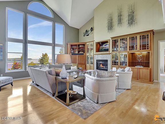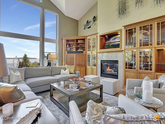 This elegant home is situated on a near acre bluff lot w/unobstructed views of Cook Inlet & the Alaska Range w/direct access to the Coastal Trail! Adjacent to parkland, this lovely home features a 2 story ceiling, window walls showing off the incredible views, beautiful cherry cabinets & granite counters open to the great room, a Butler's pantry perfect for entertaining, beautiful built-ins and aspacious main floor bedroom and bath that opens to a cozy den or office. The master suite upstairs features more phenomenal views including the port of Anchorage. The spa-like bath allows the south sun to stream in. At the opposite end of the upper level bridgeway overlooking the great room there are 2 additional bedrooms and bath with access to the rear stairwell that accesses both the main level and the walk-out basement. Off the kitchen there is a large built-in desk with actual bookcases, access to the big laundry. This generous area offers a walk in closet for family coat storage and opens to the three car garage with built-ins. The lower level of the home features a huge recreation room perfect for games and movie viewing. Two additional bedrooms and bath serve family and guests. The main level rear deck invites guests to enjoy perfect afternoon & evenings taking in the great views and overlooking the lovely fenced lawn. The lower patio is a lovely spot to while away a sunny afternoon. The attractive garden shed allows for storage. Lovely gardens with gorgeous shrubs and flowers accent the front entryway. Beautifully maintained, with exquisite finishes including new carpets, these warm and sunny spaces invite family and friends to enjoy the best of Alaskan living. Come home to 2250 Kissee Court.