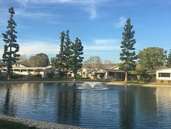 Here it is! A lovely double-wide home in the very popular Lake Park La Habra mobile home park with a great interior location. This is a senior park where one resident must be 55+. This spacious 2 bedroom/2 bathroom mobile home has large rooms and an open floorplan that makes for easy living and entertaining. The kitchen is open to both the living room and formal dining room. Light and bright inside. And so much storage! The dining room boasts a built-in hutch along one wall; the kitchen has a large pantry as well as many cabinets; and there are coat closets and storage cupboards throughout as well. The large master bedroom has an entire wall of closet space. The attached master bath has a spacious vanity with dual sinks, an inviting tub along with a separate shower. The inside laundry room has direct access to the rear yard, where two storage sheds are conveniently located. The front of the home faces a walking pathway and greenery, and offers a large patio area. When entering from the street, there is an attached carport wide enough for two cars to park side-by-side; tandem parking not required! A welcoming walkway with plants and greenery leads to an entry through the enclosed sunroom. And the Lake Park community has so many amenities! There is indeed a lake, complete with fishing, a clubhouse, community pool and spa, social clubs, cards, billiards, dinner events, travel adventures for residents, and more.