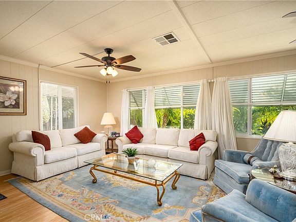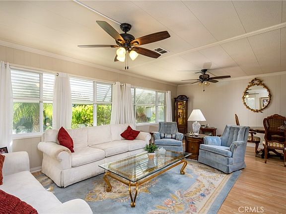 Just reduced, seller must relocate. This is a fantastic opportunity to live in this fabulous 55+ senior community. Mrs. Clean lives in this pristine, spacious 2 bedroom, 2 bath mobile. Family room opens to kitchen. Open floor plan that is bright and filled with lots of natural light. New carpeting and new laminate flooring throughout. Interior and exterior has been recently painted in soft colors. Gas cooktop, double oven. New blinds throughout. Walk in closet in master bedroom. Newer water heater, air conditioner and heater. Lovely, large covered patio with room to put lots of patio furniture and also has view of the hills. New dual pane windows throughout. Great location on lush greenbelt and cul-de-sac. Lots of fun activities for residents. Community pool and spa. Resort living every day of the year!