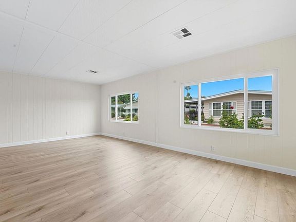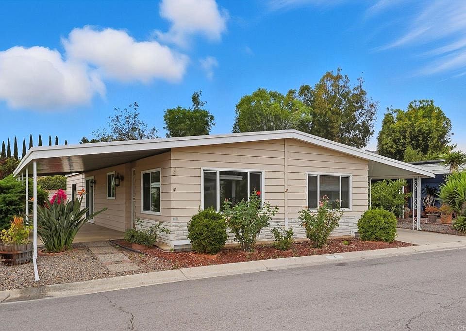 Beautifully Renovated 2-Bedroom Home in Sundance Mobile Home Park! Welcome to this fully remodeled double-wide, thoughtfully designed to combine comfort and style. When you walk through the door, the open-concept living area immediately feels welcoming, with space that flows naturally for both relaxing and gathering. The kitchen sits at the heart of the home, with quartz countertops, matching new appliances, and generous cabinet space—ready for weeknight dinners, weekend baking, or sharing a meal with friends. Off the kitchen, the family room offers a built-in media desk and flows seamlessly to the covered patio, creating the ideal space for indoor-outdoor living. Both bathrooms have been beautifully upgraded with custom tiled showers, quartz vanities, and a relaxing soaking tub. The spacious primary suite provides a true retreat with luxury finishes at every turn. Additional highlights include complete re-piped plumbing, waterproof flooring, new windows, covered parking for two cars, and a large storage shed. This home is fully turn-key and low-maintenance! Set in the highly desirable Sundance Mobile Home Park, a welcoming 55+ community with resort-style amenities: clubhouse with kitchen, heated pool, jacuzzi, fitness center, saunas, library, billiards, shuffleboard, and lush greenbelts. Conveniently located minutes from shopping, dining, and entertainment. Don’t miss your chance to own this beautifully updated home in one of North County’s premier retirement communities. Schedule your private showing today!