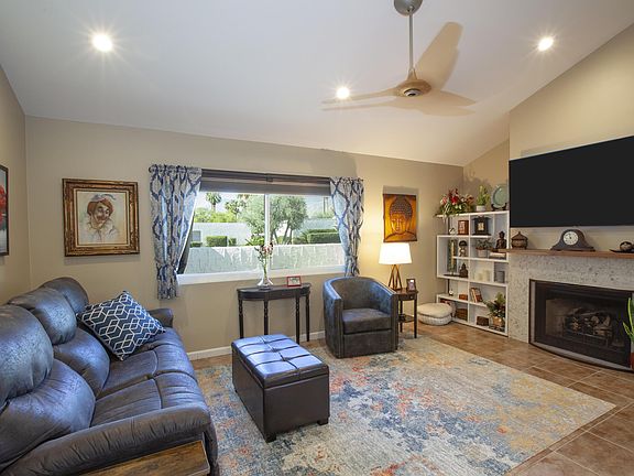 Gorgeous Palm Springs south end condo in the gated community of Sunshine Villas. Tastefully remodeled 3 bedroom, 2 bath with many energy efficient upgrades. Solar owned! Dual pane windows installed in 2021. New Amana HVAC installed less than 1 year ago. Light and contemporary with white cabinetry and Quartz counters. Updated stainless kitchen appliances include GE refrigerator, Bosch dishwasher, Whirlpool gas range plus a Samsung microwave. Culligan soft water system 2 year's new. Newer raised panel doors and hardware. Open living and dining flow off the kitchen with fireplace. Private front courtyard with amazing views of the San Jacinto mountain range. Master bathroom has Quartz counters with updated walk in shower and glass doors. The rear patio is covered and features a newer wrought iron fence with artificial turf accents. Amenities include 4 pools and spas, 4 tennis courts and pickleball. Only minutes to downtown for dining, shopping and activities.