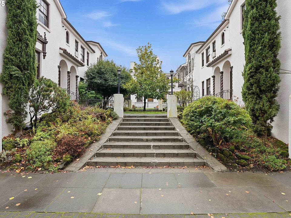 Welcome to this charming 1930 Mediterranean-style condo located in the heart of the highly desirable Kerns neighborhood. This beautifully maintained 2-bedroom, 1-bath home offers the perfect blend of historic character and modern updates across 895 sq ft of comfortable living.Step inside to find refinished hardwood floors, arched details, and French doors leading into an elegant dining room. The recently remodeled bathroom features a new tiled shower, pedestal sink, and updated flooring. The kitchen is equipped with new appliances, making meal prep a breeze.At the entry, a stunning original 1930s staircase and period lighting create an inviting first impression. The building’s classic stucco exterior enhances the Mediterranean charm, while the interior offers practical conveniences including in-unit washer and dryer, plus access to a communal laundry area, onsite gym, and a private storage unit located in the basement.All of this in one of NE Portland’s trendiest and most walkable neighborhoods — close to eateries, cafés, parks, and local shops. A perfect home for those seeking character, convenience, and an unbeatable Kerns location.