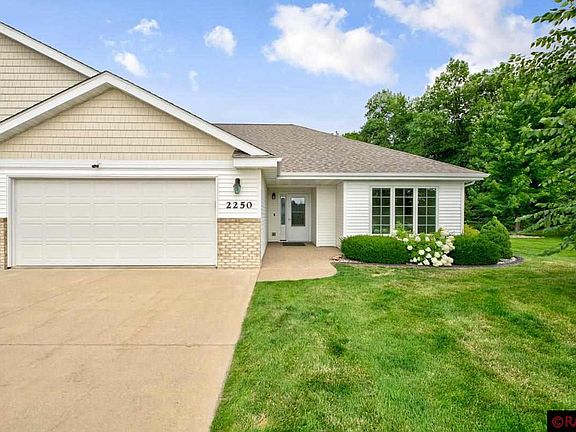 Isaiah Estates in Upper North Mankato on end of Cul De Sac. Remodeled and well maintained 2 bedroom, 2 bath townhome. Outside you'll find a peaceful ravine backyard, large serenity area with a welcoming arbor to be surrounded with comfort. The added picture window in the sunroom helps to enjoy this view year round. Large open kitchen with maple cabinets, cabinet lighting, Cambria counter tops, pull out drawers throughout, stunning tile floors, and open dining area. Walk out patio from dining room too! Both bathrooms redone in 2017 one offers walk in tub. Main bedroom has private bathroom and a massive walk in closet. This house offers vaulted ceilings, arched doorways, ceiling fans, custom shades for the new windows (2018) and in floor heat (not in sunroom) throughout you wont want to miss all these unique features this home has to offer. Enjoy the relaxing open floor plan with the the gas fireplace centered perfectly to enjoy from anywhere.