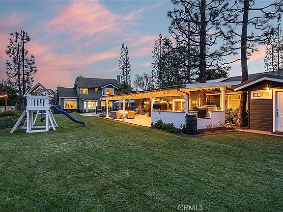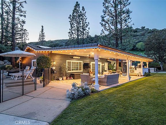 An exquisite new patio extends from the guest house, complete with an outdoor Delta Heat fridge and BBQ, ceiling fans, electric heaters, and a Sonos sound system, all set against the backdrop of stylish gray travertine tile flooring. The meticulously landscaped yards, resembling a picturesque park, have been enhanced with not just aesthetic upgrades but also practical improvements like a retaining wall, smart sprinklers, drainage systems, pavers, and a keypad-access gate with complete utility hookups for an RV. Additionally, a fully enclosed chicken coop has been added, currently housing 5 chickens, offering a fun touch to this magnificent property.