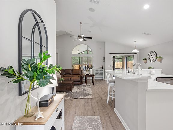 Move in Ready! Beautifully upgraded 3 bedroom, 2 bathroom Eagle Harbor home. As you enter, you'll love the LPV flooring that flows throughout the home. First find the dining/flex room. From there enter the kitchen featuring lots of cabinets, new quartz countertops with breakfast bar, and an eat-in space for your table. Plus all appliances were new in 2024. It opens into the large family room. The Primary bedroom is a good size and the attached bathroom has dual sinks, soaking tub & separate shower. The guest bedrooms are split from the primary and share the guest bathroom. Enjoy the evenings on the over 400 sq foot covered and screened lanai that overlooks the newly fenced back yard and nature preserve. All this plus an indoor laundry room, 2-car garage with finished floor, tankless water heater, a roof that was installed Oct 2020 and HVAC in Oct 2023. In addition, you get the wonderful Eagle Harbor amenities including the 3 pools, numerous playgrounds, parks, tennis courts and more!