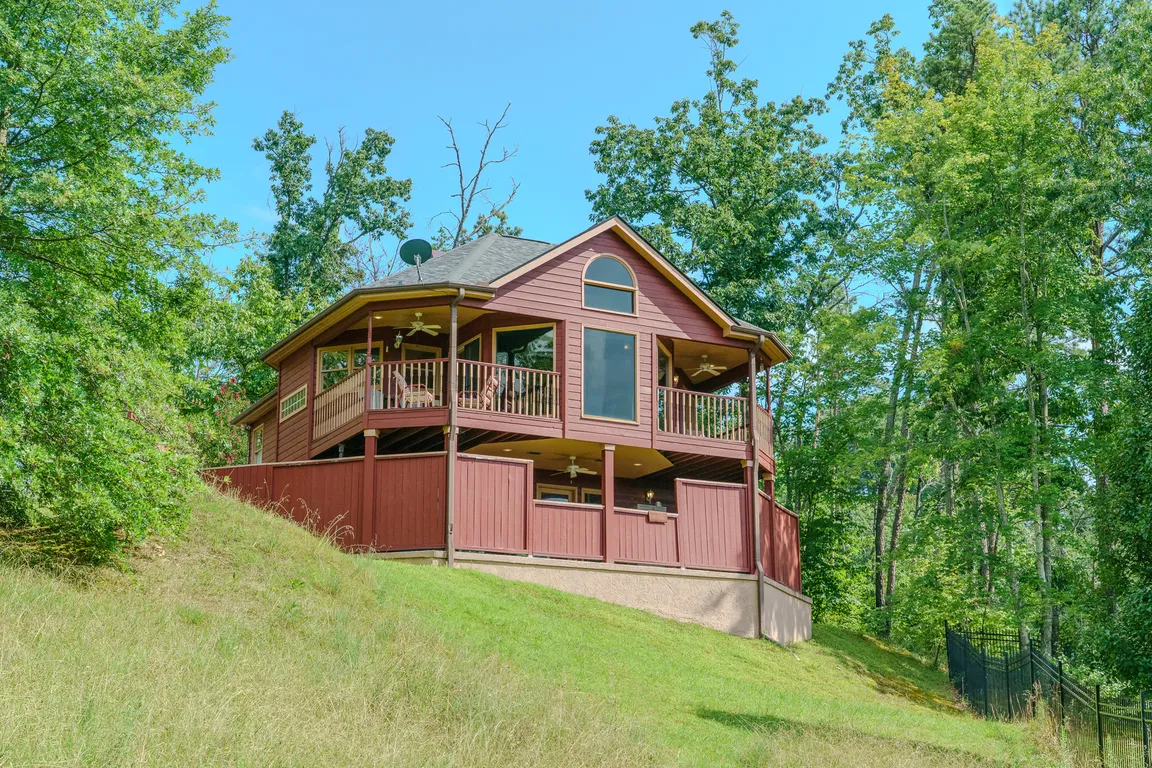 SPECTACULAR VIEWS FROM THIS AMAZING CHALET STYLE CABIN WITH DOUBLE DECKS, FENCED AREA FOR PETS, AND AMAZING RENTAL POTENTIAL! VRBO ESTIMATE IS 50,000.00 YEARLY! Not guaranteed by seller or agents, your results may vary. Located in the park-like setting of Shagbark community with pools, tennis, pickle ball, walking trails, dog ...